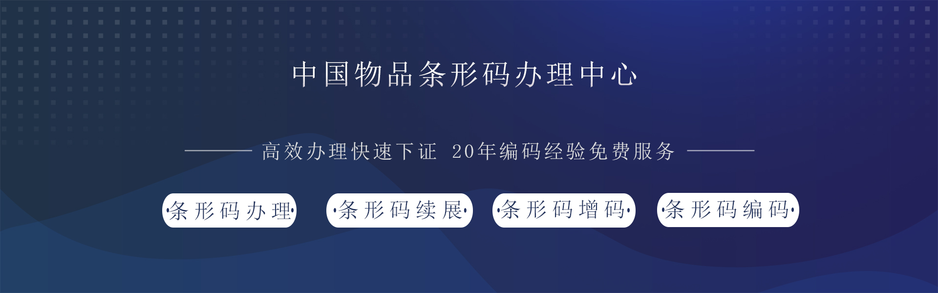 专业从事条形码申请、条形码注册、条形码增码,条形码续展、条形码编码制作;高效办事,快速下证。我公司由多名经验丰富、及一批专业代办代理编码技术人员组成,建立了规范的代理代办流程,以及完善的售后免费服务,免费提供任何咨询服务。